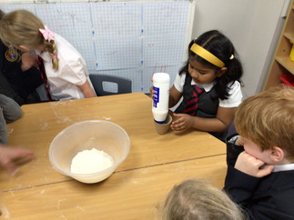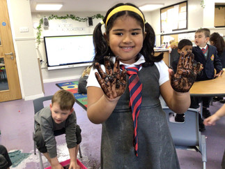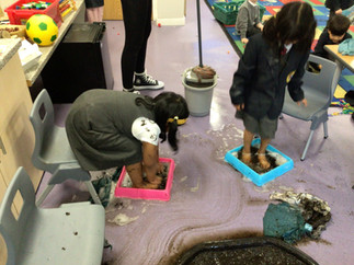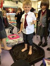 A real highlight was when some of the children joined Mrs Giles to experience the “thick oozy mud” from the story. They were thrilled to “squelch and squerch” in the mud, exploring how it felt between their toes. This sensory play prompted some wonderful language development, as the children described the feel of the dough and mud and explained how they shaped their story characters.