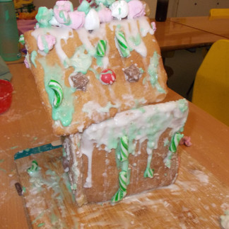 In our DT lessons this term we planned and created our own gingerbread houses. We worked in groups to discuss what sort of house we wanted to build and then sketched it in our books. We then made the dough and rolled it out thinly, the thinner it is the crisper the biscuit will be, then baked in the oven. The next lesson we attempted to cement them together with stiff frosting but some of them just wouldn't stay together! Eventually each group managed to build and decorate their designs and as you can see made a pretty good job of it.