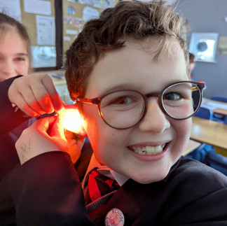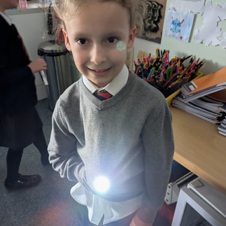 We used torches to shine light through a variety of objects found in our classroom. We observed the differences in how light passes through various materials.
