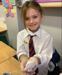 Last Wednesday, was a very exciting day for the children. When they entered the classroom, they found a trail of footprints across the room. Most of the children were trying to guess who these footprints belonged to and some even began to measure the size of the footprints. To end the lesson the children made snow.