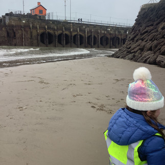 We finally managed to participate in our two Beach School sessions. It was a bit chilly but still a lot of fun and a great learning experience. The children did art with beach materials and some of us went rock pooling, those that wanted to were even able to hold some crabs. We were lucky to have the tide so far out that we were able to see limpets on the sea wall and look at some of the boats close up. Returning safely before the tide came in.