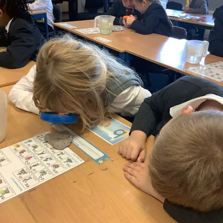 This term we have been learning about rocks. We have learnt about sedimentary, igneous and metamorphic rocks and how they are formed. We have also learnt about how rocks can be sorted according to their properties. In our latest Science lesson we looked at the word permeable. We learnt that some rocks are permeable and let water passs through and some rocks are impermeable and do not. We thought about how roof tiles would need to be made from impermeable rock to help keep the rain from soaking through into our houses. We had a selection of different rocks and tested them to see if they were permeable or impermeable. We submerged the rocks in water and used our careful observation skills to see if we could see any air bubbles being released from the rocks. We made predictions about whether we thought the rocks would be permeable or not and were all blown away when we submerged chalk into the water. From our local knowledge of chalk, from The Warren, most children knew that it would be permeable but we did not expect so many bubbles to be released!